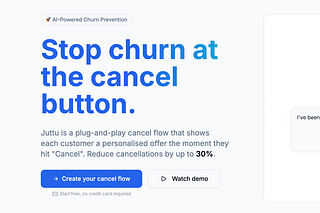 Elevator pitch: Juttu.co helps SaaS teams reduce subscription churn with AI-personalized cancel-flows.